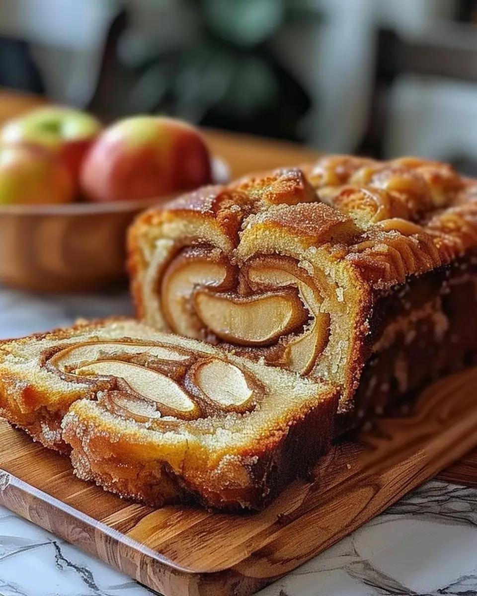 Delight in the warm flavors of homemade apple cinnamon swirl loaf, a perfect treat for any time of day.