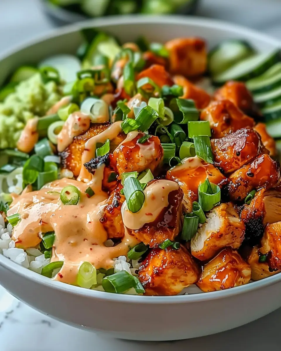 Absolutely! The Bang Bang Chicken Bowl is a great make-ahead meal. You can prepare the chicken and the sauce a day in advance and store them separately in the fridge. Just keep the toppings, like green onions and crunchy vegetables, fresh until you’re ready to serve to ensure they stay crisp. When it’s time to enjoy, simply warm everything up and assemble your bowl. This makes meal prep easier for your busy week!