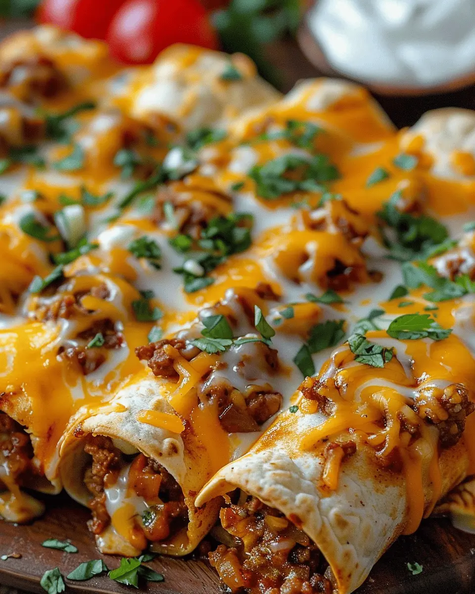 - Sprinkle a generous amount of shredded cheese over the beef mixture.
