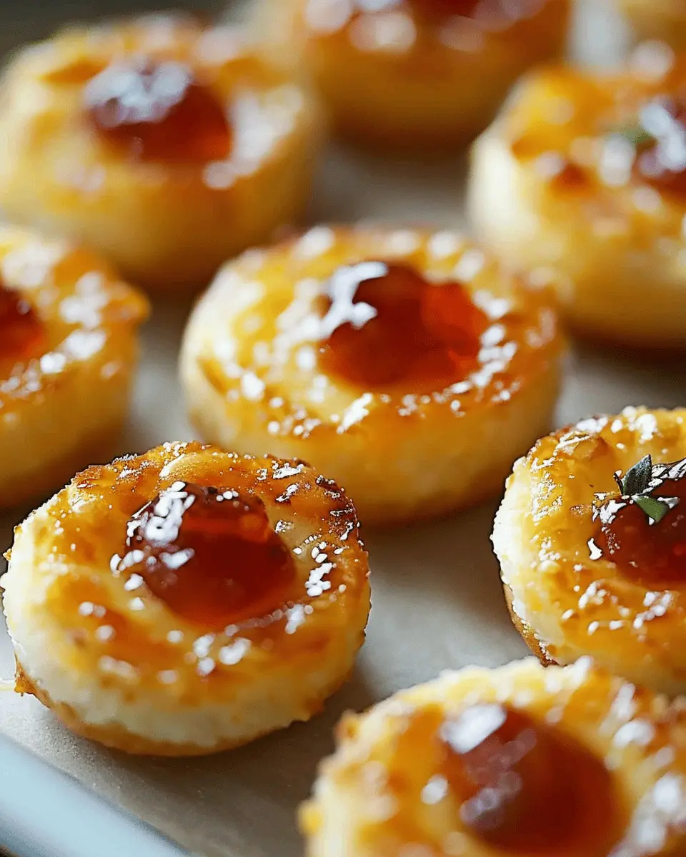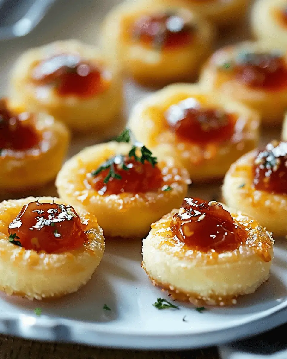 Here’s where your cheesy thumbprint appetizers get their zesty twist. The contrast of the gooey cheese and the tangy hot pepper jelly is what makes these bites irresistible.