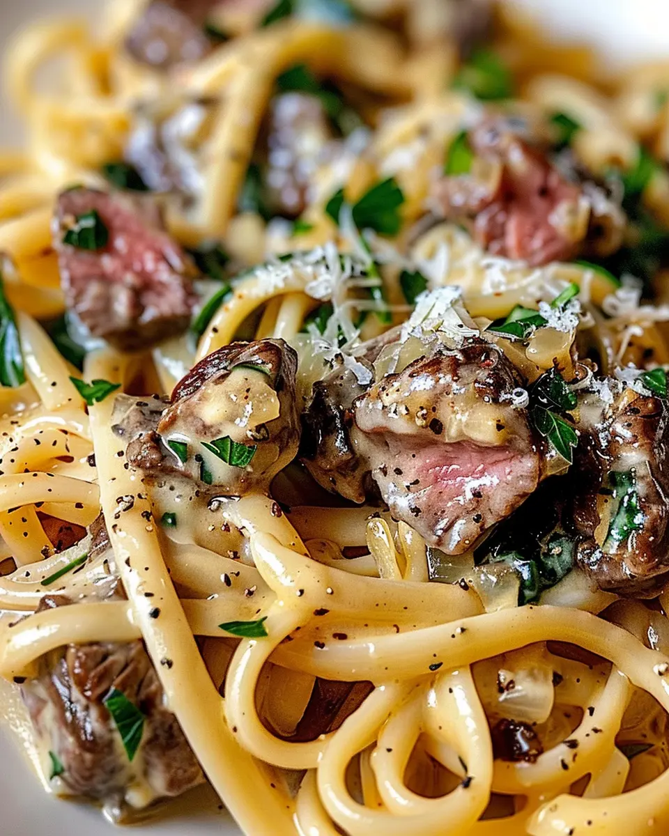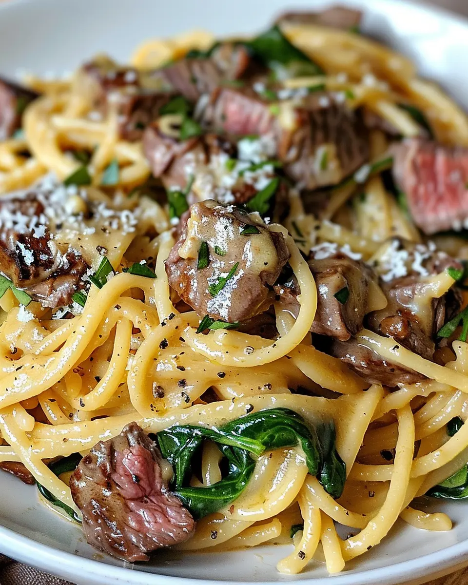 PrintCreamy Cowboy Butter Linguine: Indulgent Steak Bites & Spinach Recipe