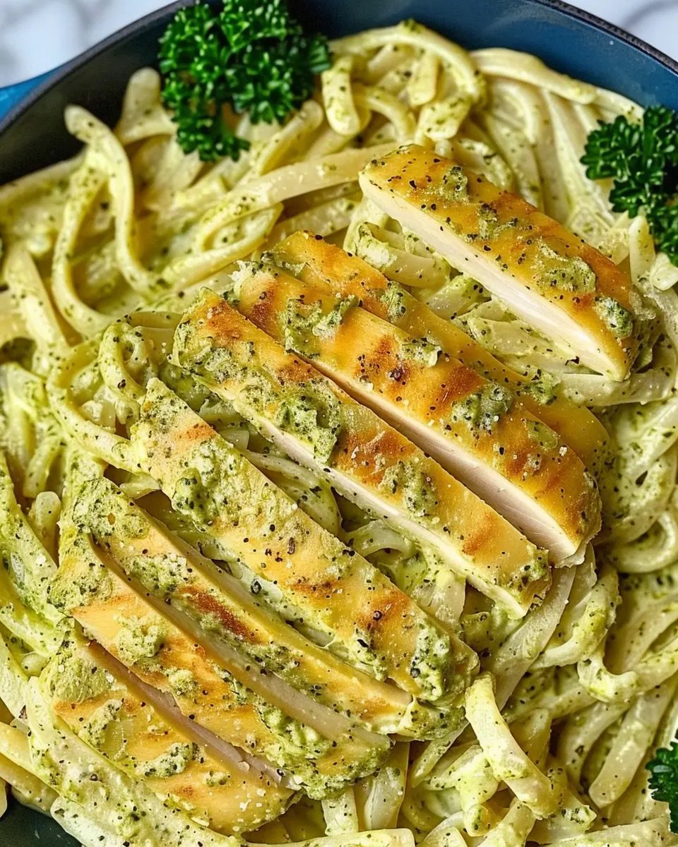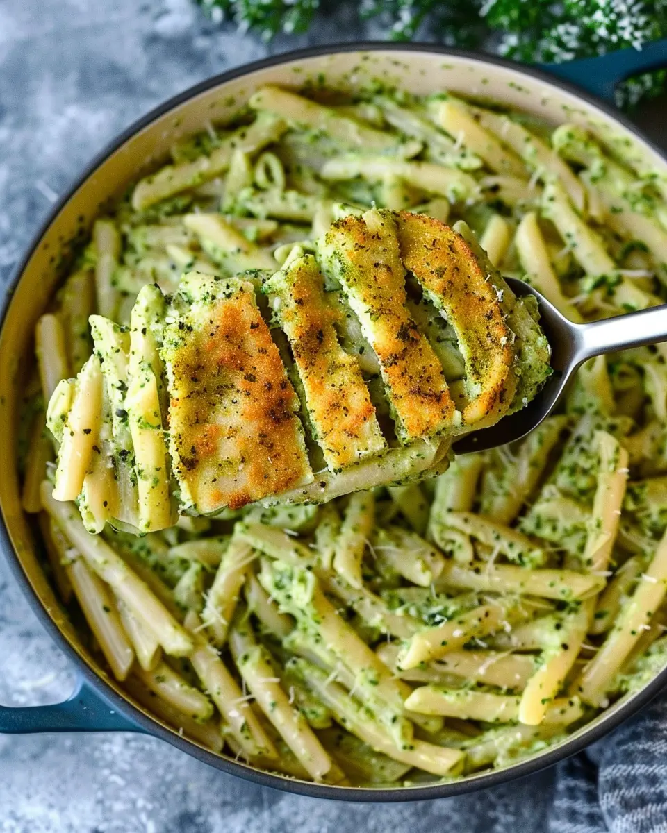 Nutritious and Flavorful: Pesto adds an herbal kick that’s both rich and fragrant, while the creamy sauce makes each bite feel indulgent. You’re not just eating; you’re enjoying a medley of textures and tastes.