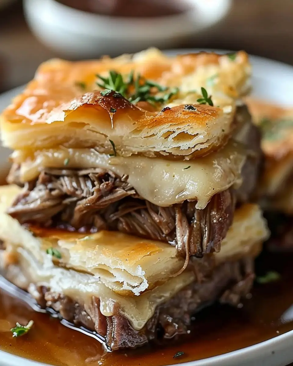 Statistics show that comfort foods have a unique ability to boost our mood, and what’s more comforting than a warm, cheesy bite of beef wrapped in flaky pastry? According to culinary experts, simple, fusion-style dishes like this cater to the younger demographic who crave convenience without sacrificing flavor. So, when you’re planning your next get-together, consider these French Dip Squares as not just a dish but a way to bring friends together.