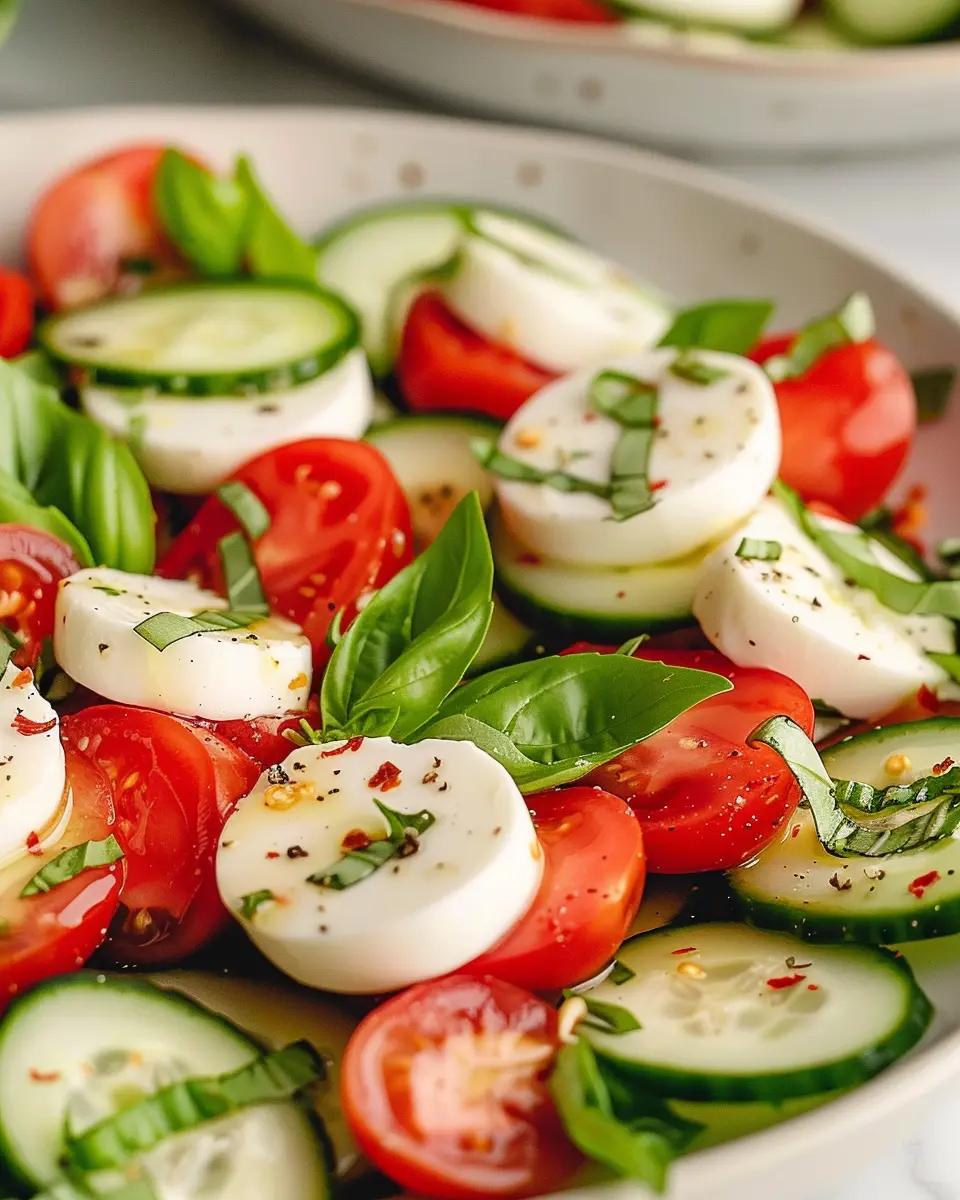 Absolutely! One of the best things about this Fresh Cucumber Caprese Salad is its versatility. While cucumbers, tomatoes, and mozzarella are classic, feel free to add or substitute other vegetables. Fresh bell peppers, avocados, or even zucchini can enhance the flavor and texture. Just chop them into bite-sized pieces and toss them in!