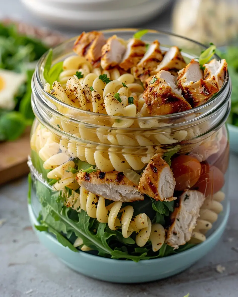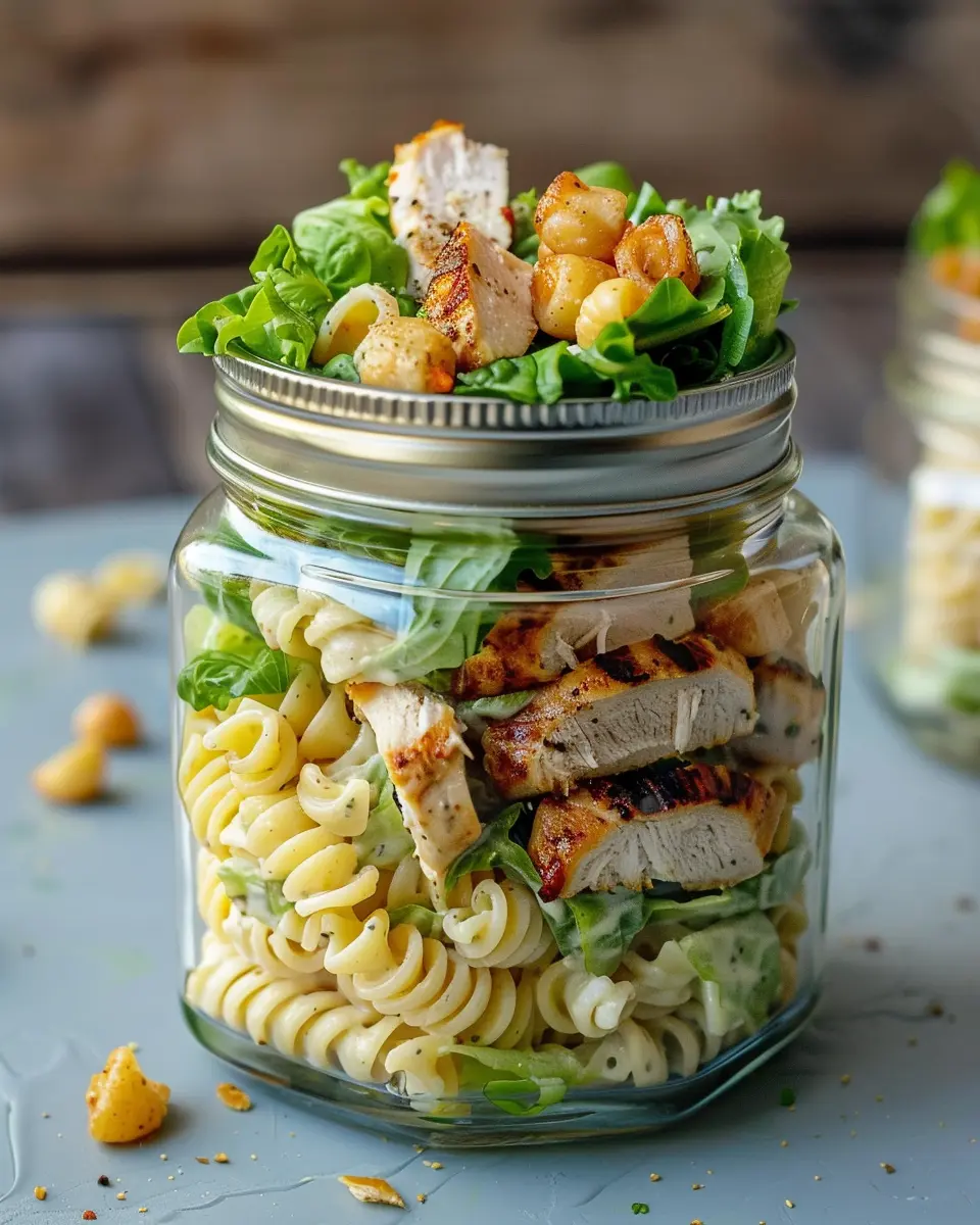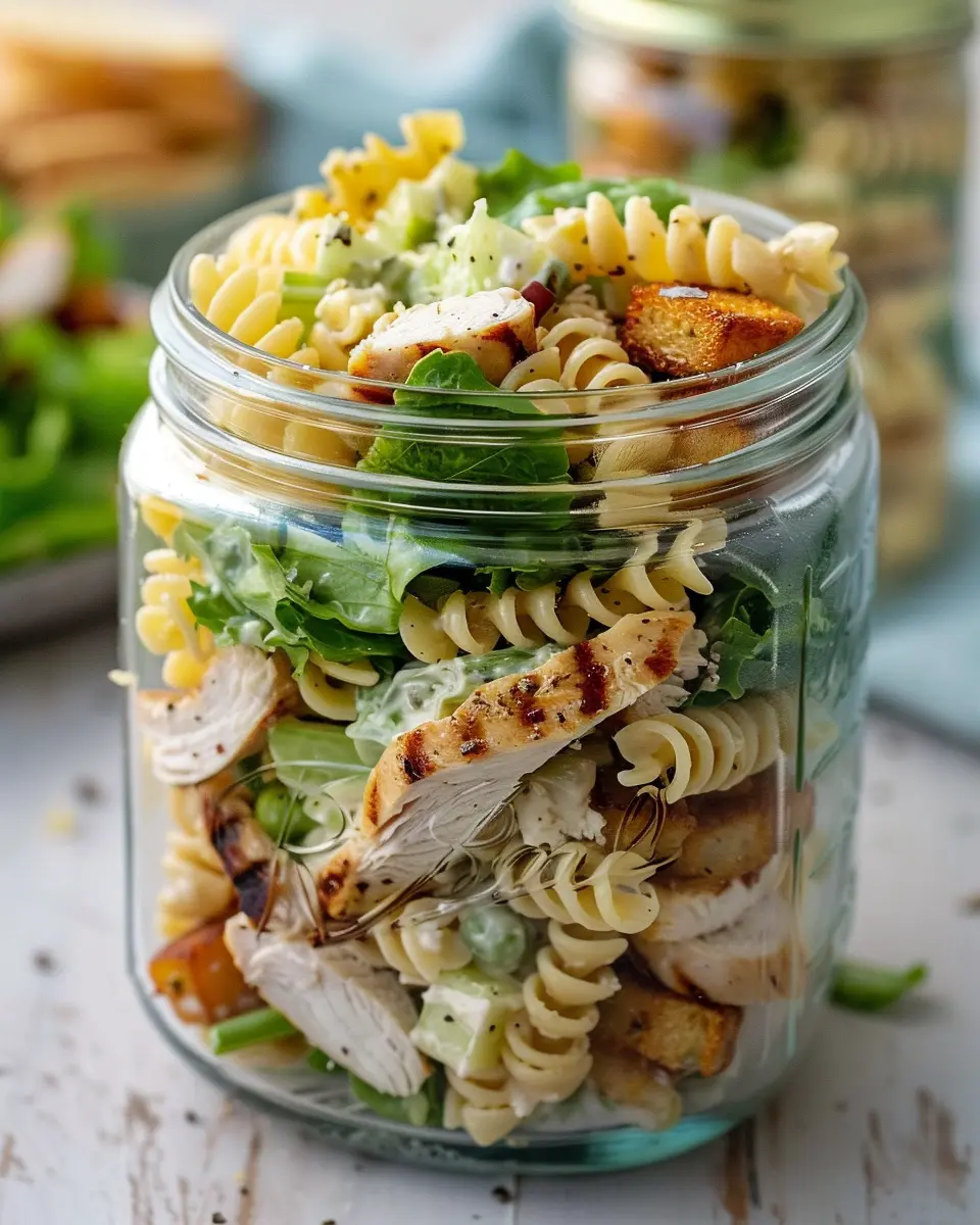 Introduction to Grilled Chicken Caesar Pasta Salad Jars