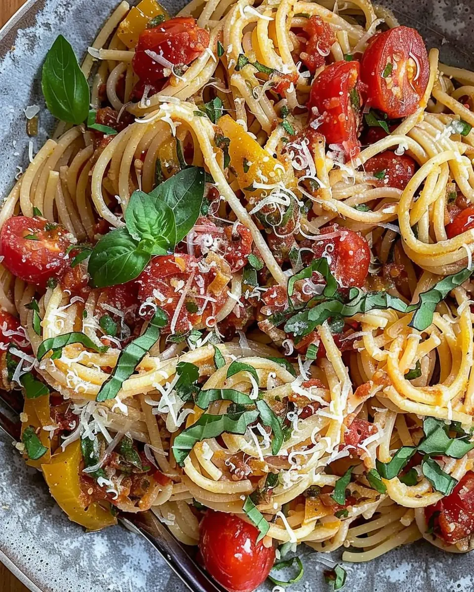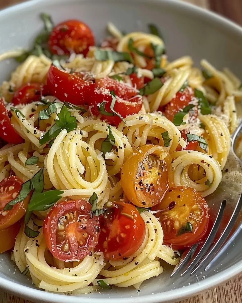 A delightful summer pasta dish that celebrates the flavors of fresh garden ingredients, perfect for a quick meal.