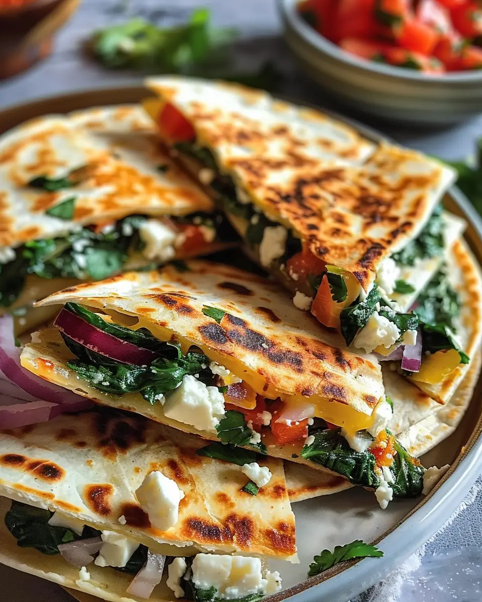 Studies have shown that the Mediterranean diet is associated with numerous health benefits, including improved heart health and better weight management. Filled with ingredients like spinach, feta, and mozzarella, these quesadillas are not just delicious—they pack a nutritional punch. The combination of whole grains in the tortilla, along with the protein from feta cheese and the vitamins from fresh spinach, makes for a meal that is both satisfying and nourishing.