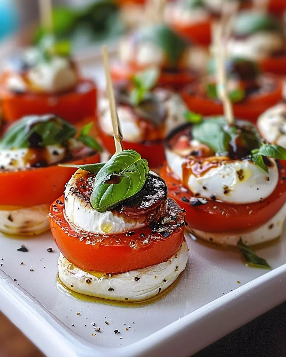 Flavor Explosion: The classic flavors of the caprese salad—creamy mozzarella, tangy tomatoes, and fragrant basil—pop in every bite. The balsamic drizzle adds a punch, balancing the sweetness of the tomatoes and the richness of the cheese. This combination is not only pleasing to the palate but also visually stunning.
