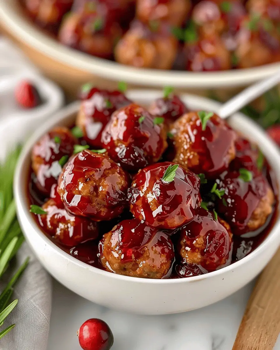 When it comes to sides, consider pairing your meatballs with roasted vegetables like Brussels sprouts or carrots. They complement the sweet and tart flavors of the cranberry glaze beautifully.
