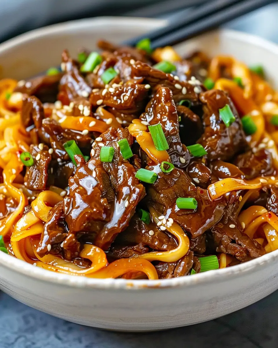 PrintSlow Cooker Korean Beef Noodles Recipe: Easy & Irresistibly Savory
