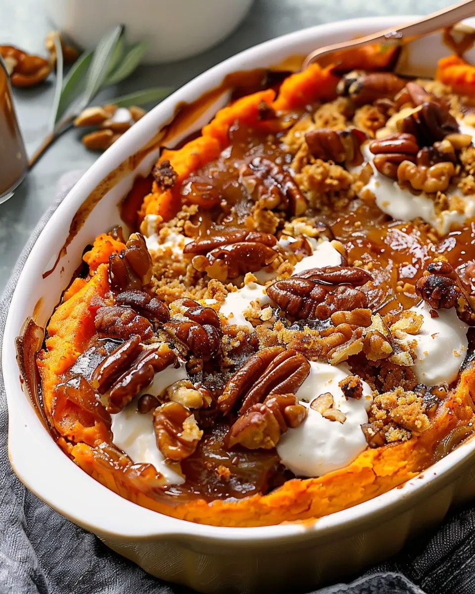 PrintSouthern Maple Sweet Potato Casserole: An Indulgent Delight with Turkey Bacon