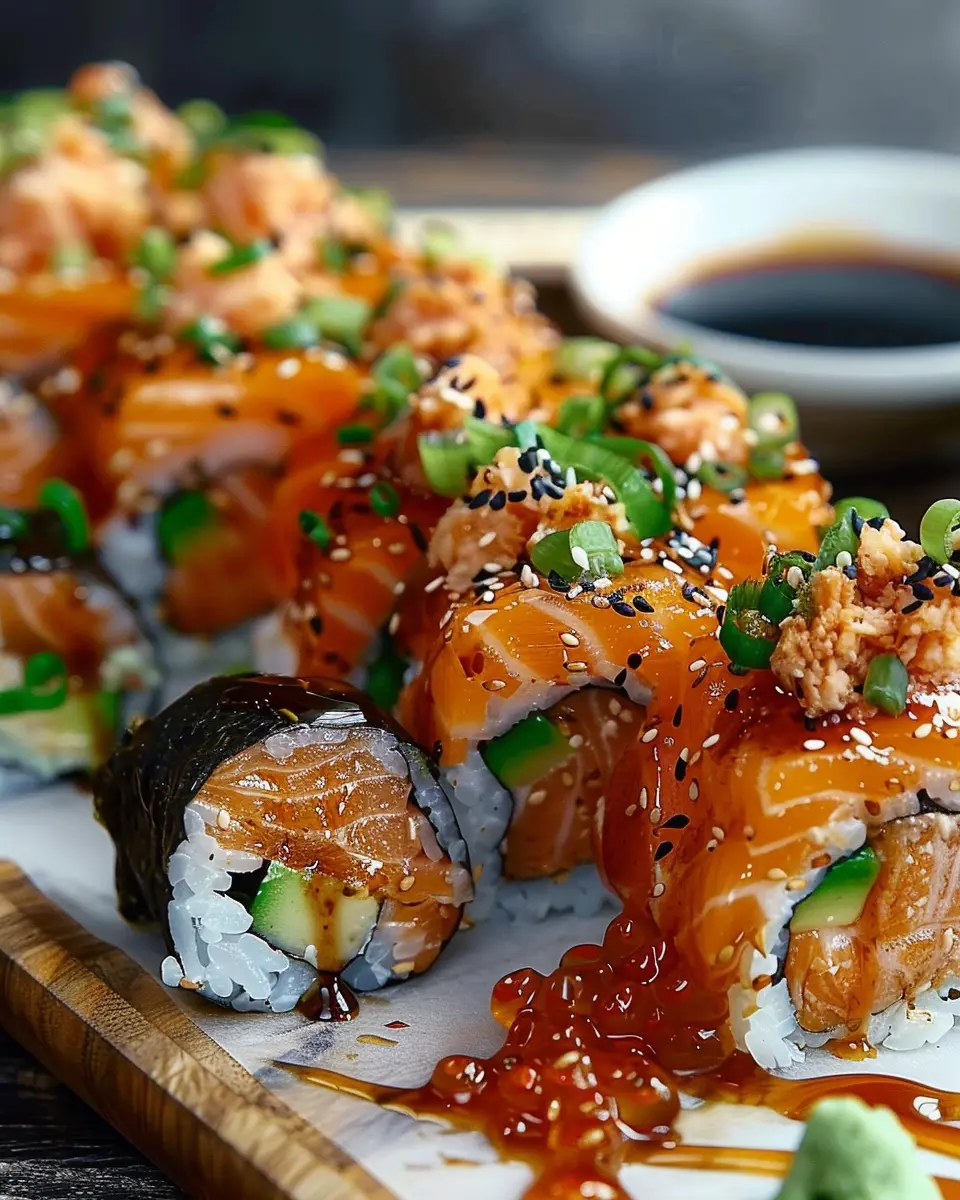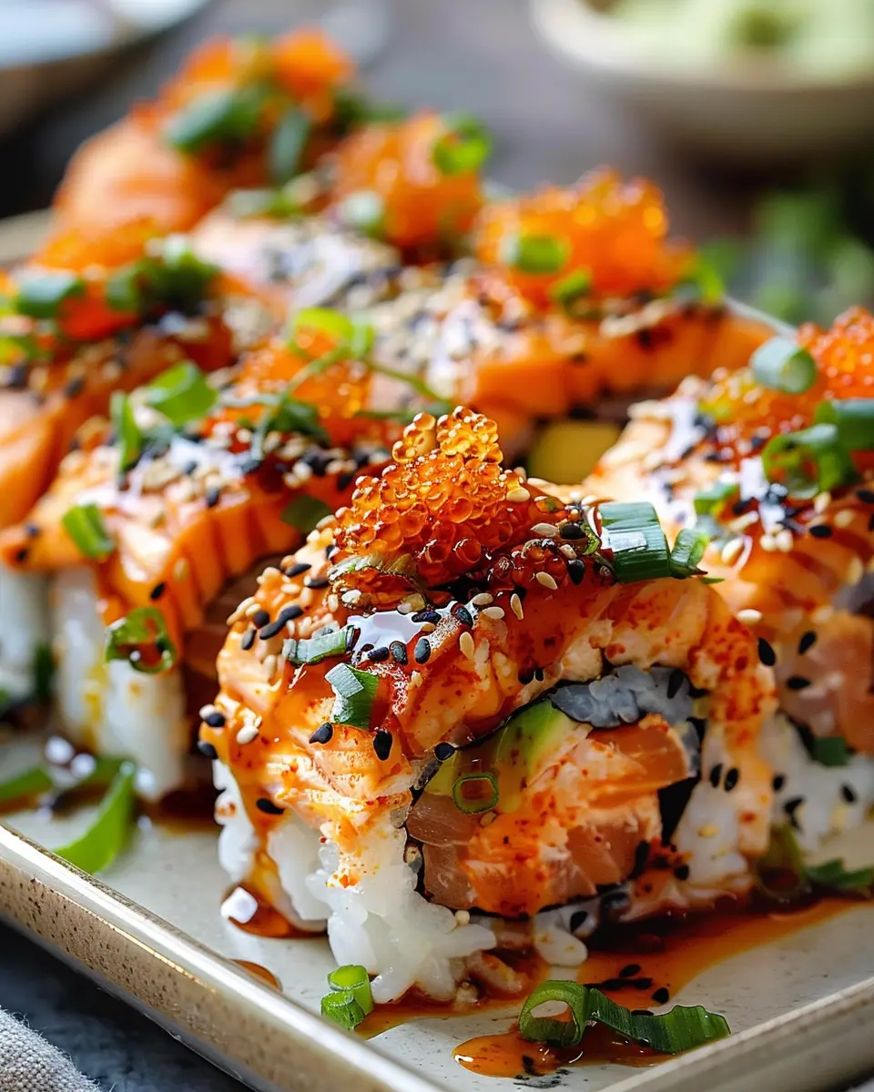 To take your spicy salmon sushi bake recipe to the next level, consider these garnishes: