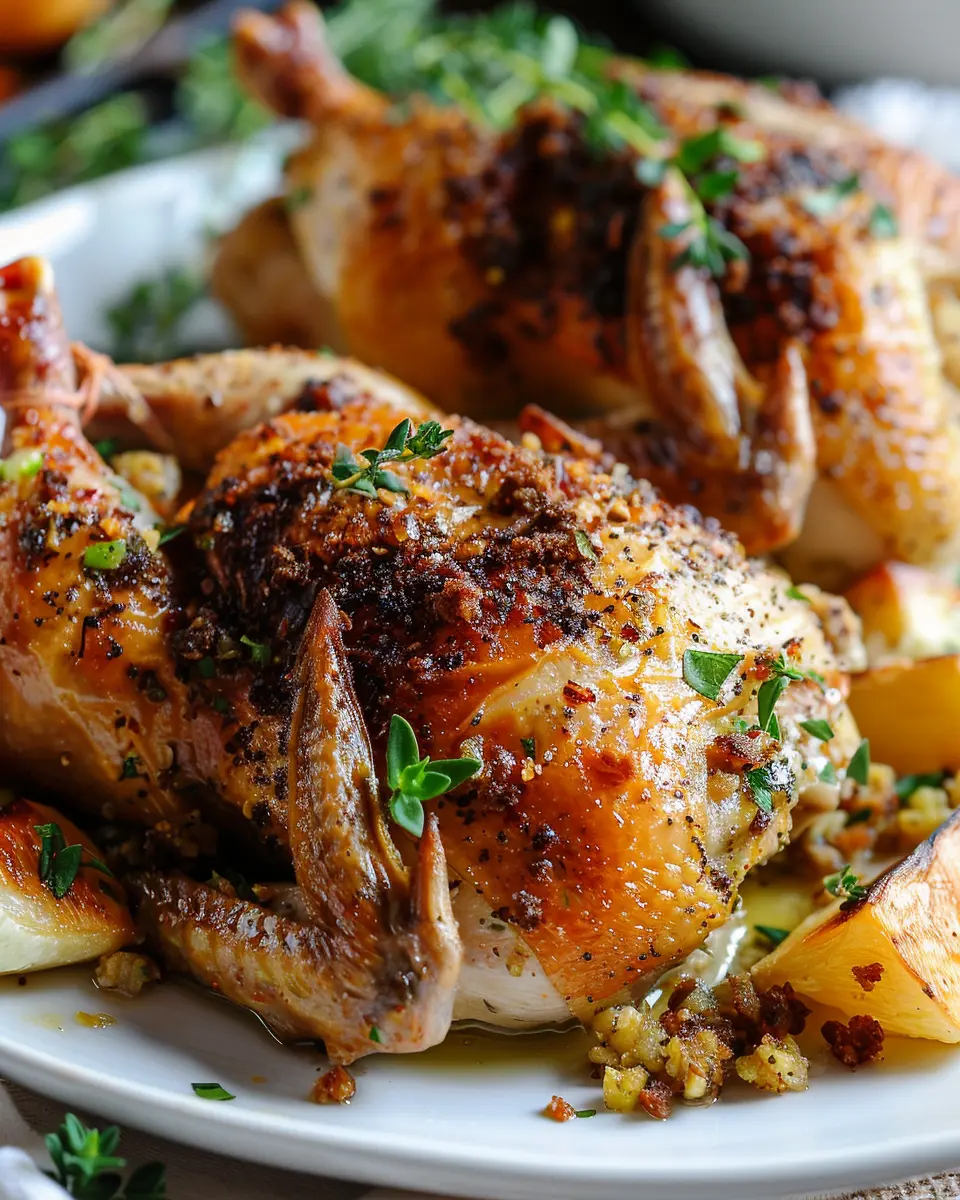 - Thyme and Rosemary: Infuse your stuffing with fresh thyme and rosemary for a fragrant twist. Both herbs complement the rich flavor of the hens beautifully.
