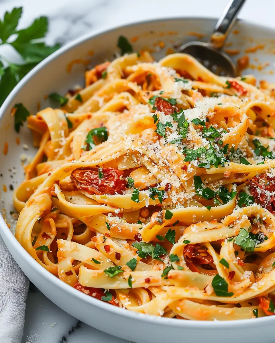 To elevate your sun-dried tomato pasta recipe, garnishing is key! Fresh parsley adds color and a pop of flavor, brightening the dish beautifully. Simply chop it finely and sprinkle generously over the pasta just before serving. For those exploring dairy-free options, vegan parmesan can be a game changer. The nutty, cheesy notes it brings marry seamlessly with the sun-dried tomatoes, enhancing the overall experience. You can find recipes for homemade vegan parmesan using cashews and nutritional yeast that are super easy to whip up.