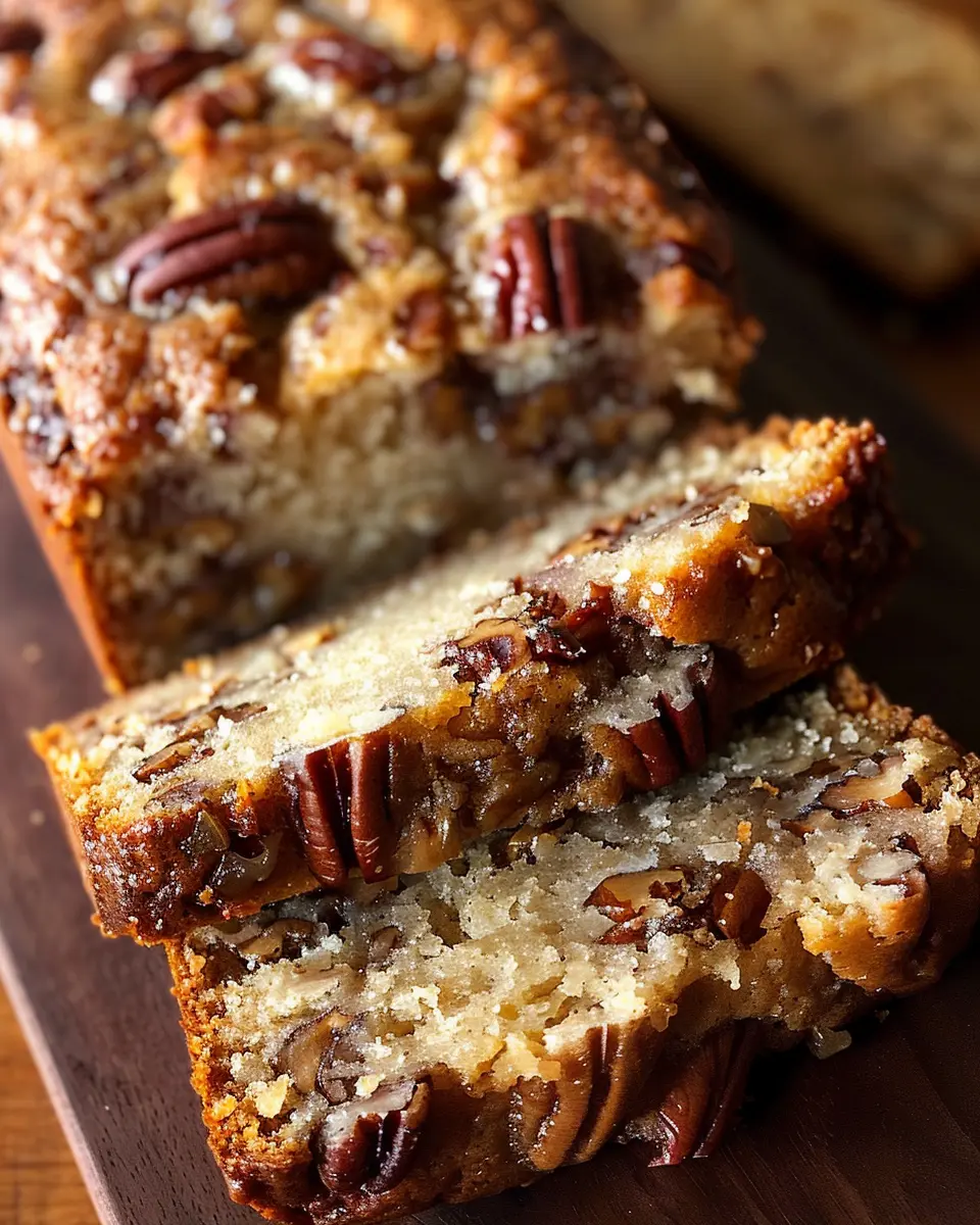 A delightful sweet bread featuring the rich flavor of pecans, perfect for a cozy home treat.