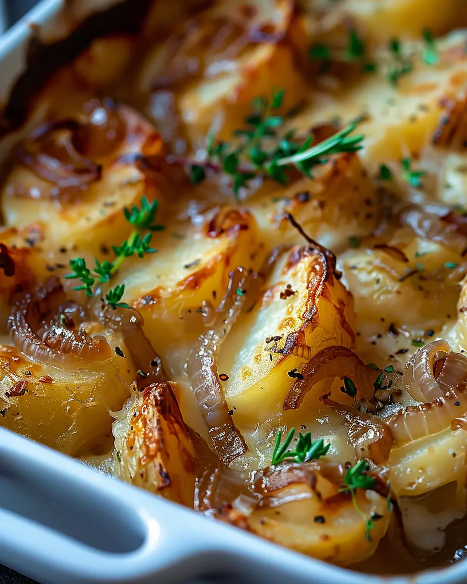 A delicious and comforting Thanksgiving dish that combines layers of potatoes and rich French onion flavor.